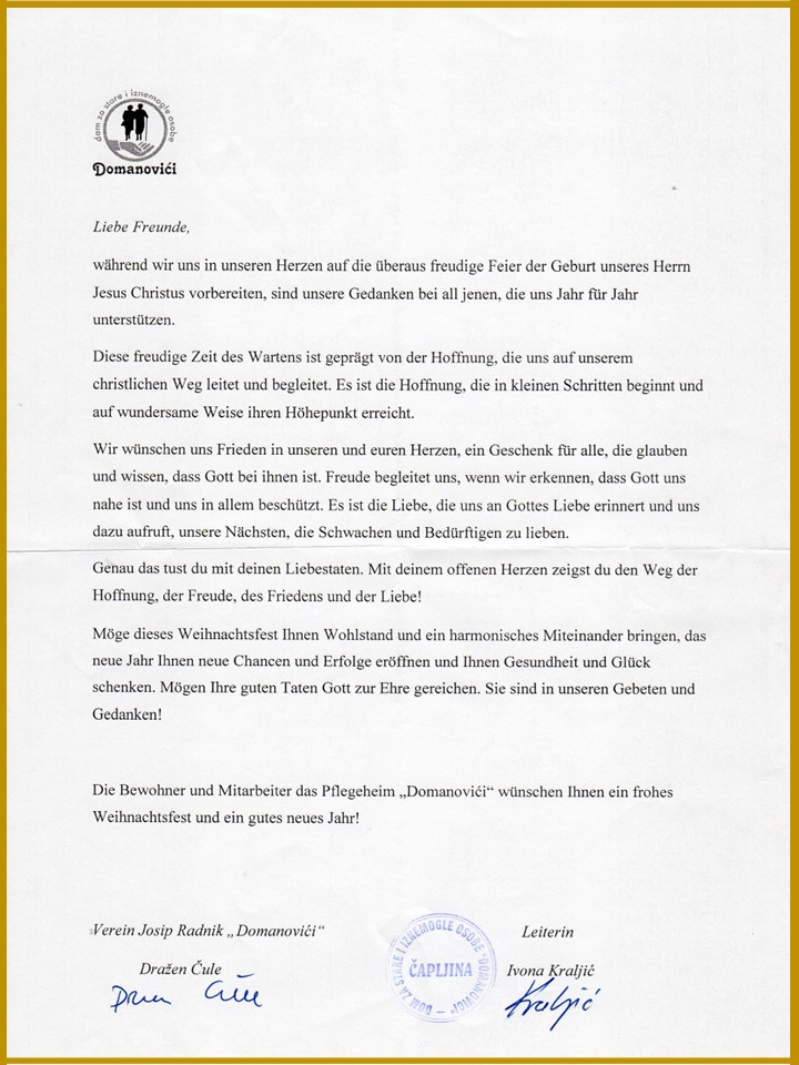 Danke aus Vukovar und Domanovici für die Hilfe 2025!
